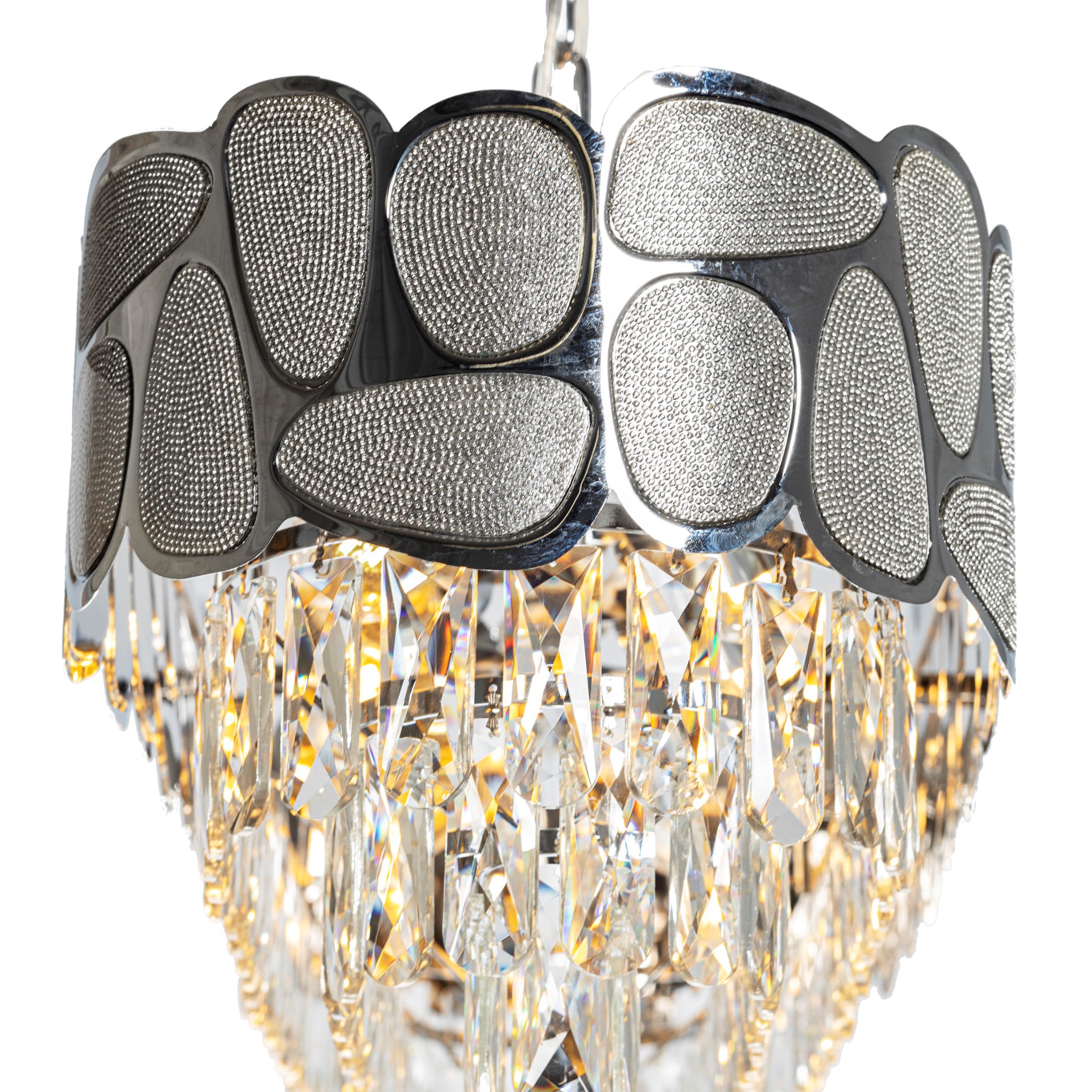 Κρεμαστό φωτιστικό με μεταλλικό σκελετό και 3 ορόφους κρύσταλλα.