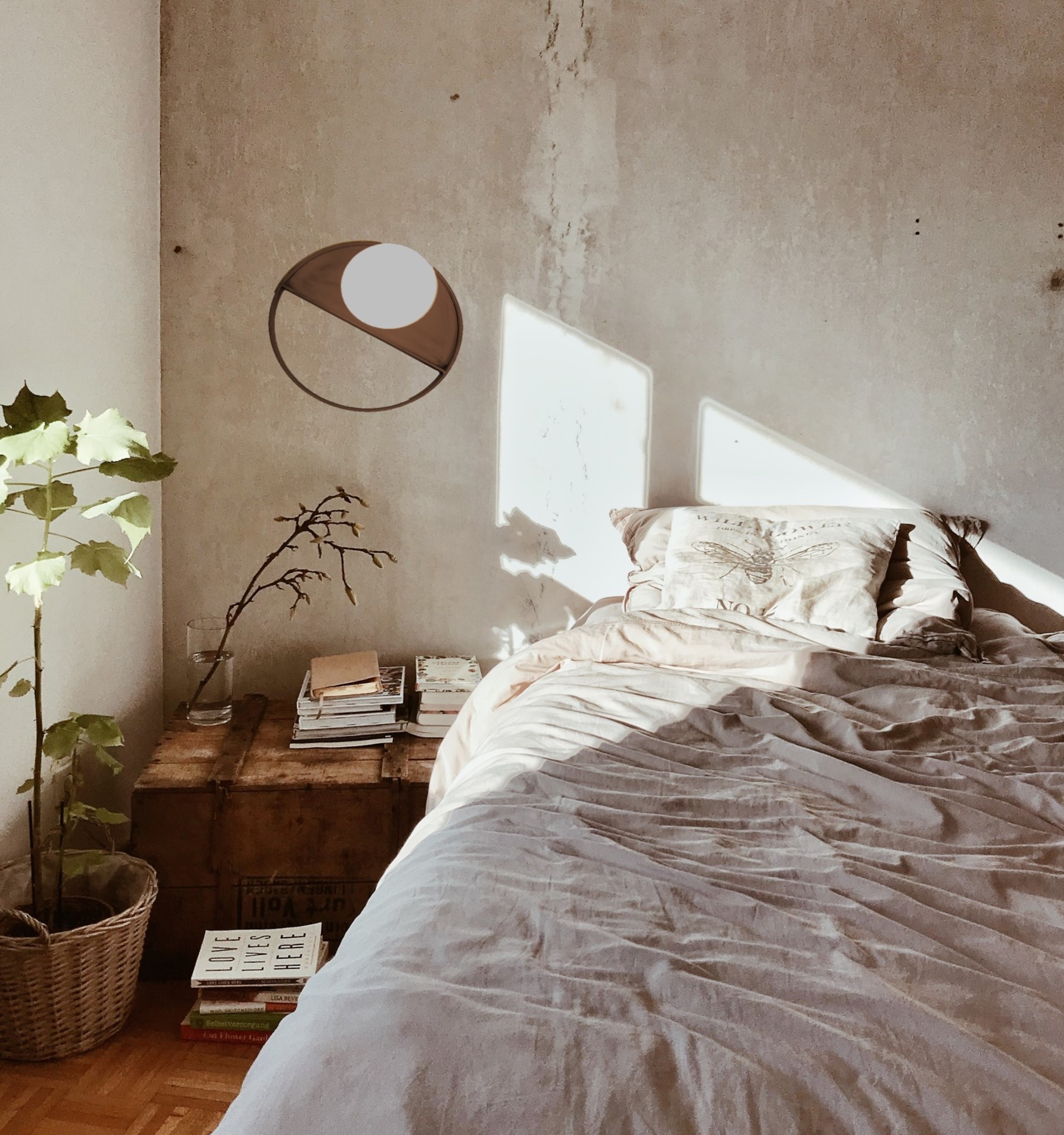 Wall lamp, metal in oxidized patina finish, with opal glass. Dimensions and color can be changed to order.